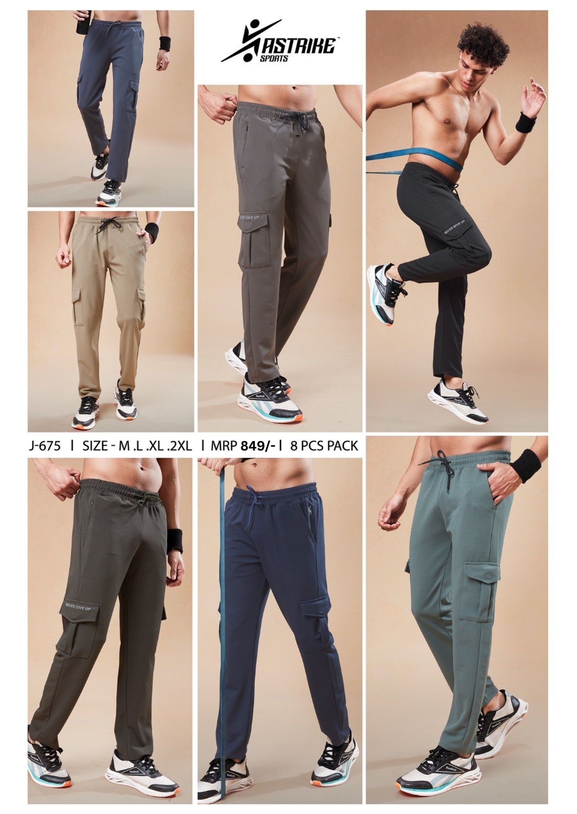 Men Solid Relax Fit Sports Cargo Trackpants at Wholesale Price J 675 | 8 Pcs Box